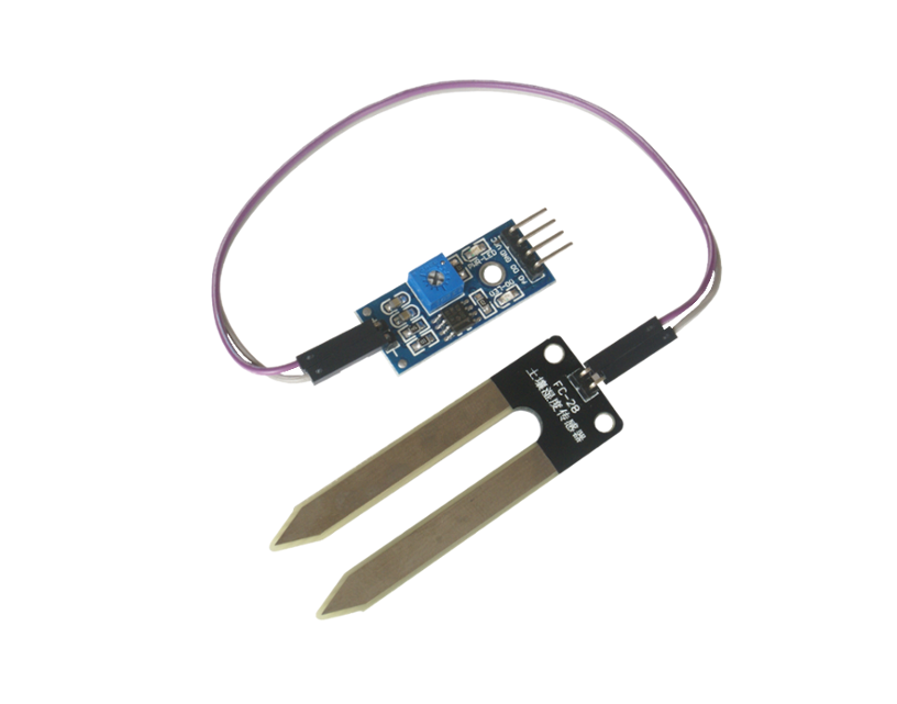 Sensor is open electric curcuit with operational amplifier. After putting measuring element (board) to wet ground on analog output A0 appear voltage inversely proportional to soil conductivity. It is if this base will be completely dry, output voltage will be high. Similary device can be used as flooding sensor. In a case when water apear on the end of sensor board, output voltage go down. Other feature of sensor is digital output D0. By potentiometer can be set the switching thresold. For example when water apear, digital output go to down state (as active). Both outputs an be used with Lan Controller, GSN Controller and all Arduino compatible boards.