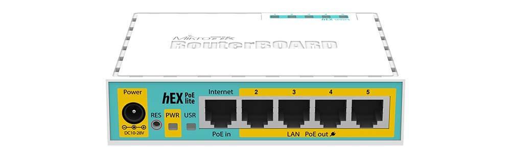 MikroTik hEX PoE Lite, POE besleme ihtiyaçlarını karşılamak için MikroTik RB 750R2 alt yapısı üzerine inşa edilmiştir. Cihaz üzerinde bulunan 5 adet 10/100 Ethernet girişlerinden ilk ethernet portu, Data bağlantısı ve ihtiyaç dahilinde POE adaptör beslemesi için ayrılmıştır, cihazn diğer etherent portlarının herbiri 24V POE çıkışı verebilmektedir.