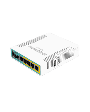 MikroTiK hEX PoE, 800 Mhz işlemci, 128MB RAM, 1 adet SFP, 5 adet Gigabit ethernet portu, 1 numaralı ethernet portu üzerinden 12v-57V arası DC Pasif PoE girişi desteği, 2-5 arasındaki ethernet portlarından sunduğu 802.3at PoE desteği ile 100+ aktif kullanıcısı bulunan küçük veya orta ölçekli ağ yapıları için PoE besleme imkanı ve gelişmiş ağ yönetim özellikleri sunar.