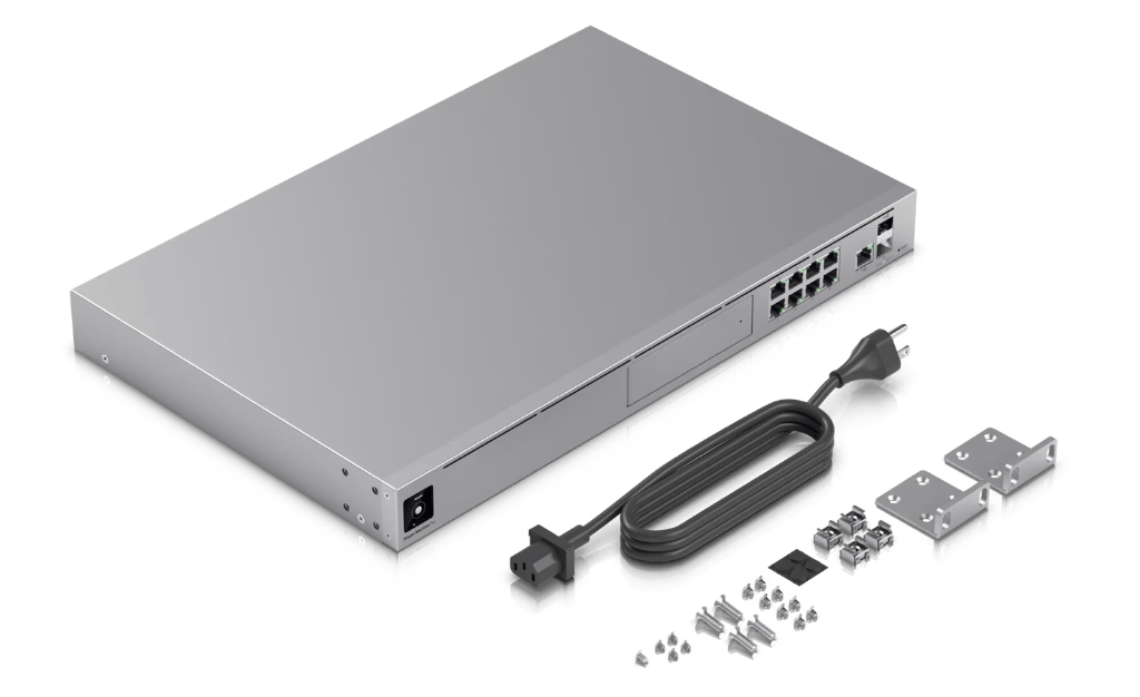 IDS/IPS: 3.5 Gbps 100+ UniFi cihaz 1,000+ istemci 10G SFP+ ×2 GbE RJ45 (LAN) ×8 3.5" HDD bay (Protect) Shadow Mode (VRRP) Site Magic SD-WAN 1.3" touchscreen