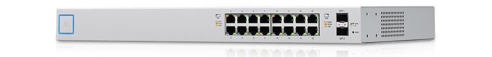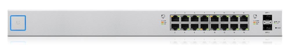 UBNT UniFi ürün ailesinin bir parçası olarak tasarlanmış UBNT UniFi Switch'ler, kurumsal yönetilebilir switch teknolojilierini sezgisel kullanım anlayışı ön planda tutlarak geliştirilen UBNT UniFi Controler yazılımı ile birleştirerek, çoklu cihaz yönetimi ve takibini tüm detayları ile tek bir ortak noktadan kontrol etme imkanı sağlamaktadır. UBNT UniFi Switch, geniş çaplı kurumsal ağ ihtiyaçlarını karşılamak için tasarlanmış UBNT UniFi Switch US-16-150 modeli, Layer -2 ve Layer -3 standartlarını destekleyen gerçek yönetilebilir switch özelliklerinin yanısıra 802,3 af/at ve 24V Pasif PoE standartlarında 16 adet Gigabit ethernet portu, ve 2 adet SFP portu ile gelmektedir.