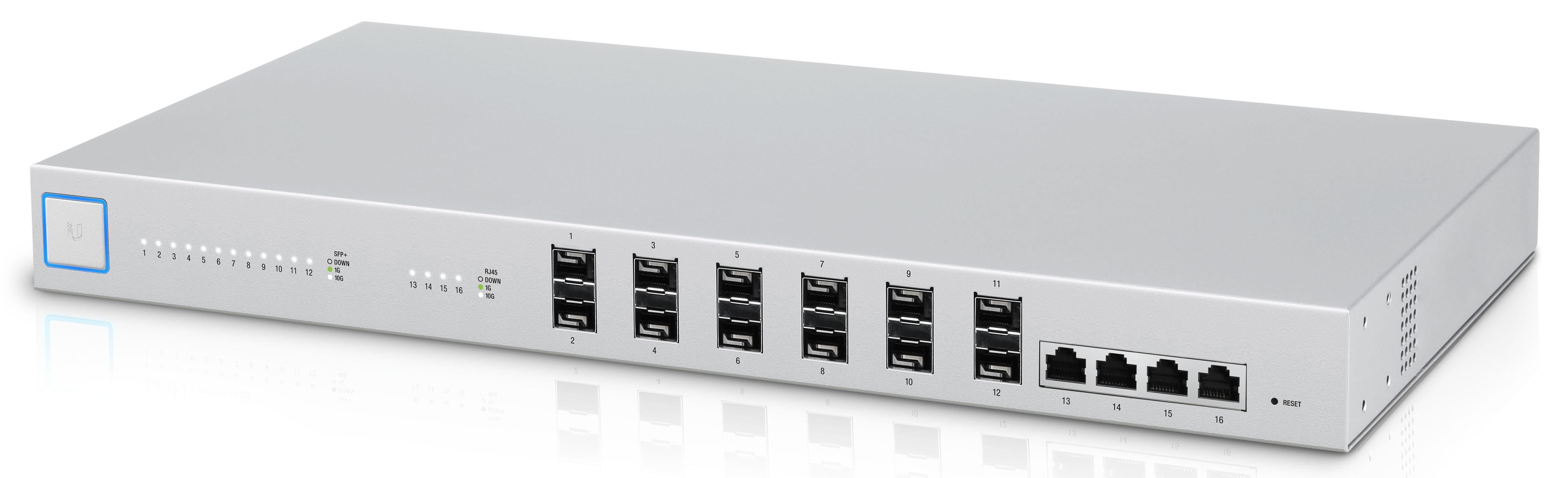 UBNT UniFi Switch ailesinin geniş çaplı kurumsal ağ ihtiyaçlarının omurga bağlantılarında kullanılmak için tasarlanmış UBNT UniFi Switch 16 XG modeli, Layer -2 ve Layer -3 standartlarını destekleyen gerçek yönetilebilir switch özelliklerinin yanısıra, 12 adet 1/10GBPS SFP+ portu ve 4 adet 10 Gigabit ethernet portu ile gelmektedir. EdgeSwitch 16XG tüm portlardan herhangi bir paket kaybı olmaksızın ve eş zamanlı olarak 160Gbps (Non-Blocking) gerçek bant genişliği sağlamaktadır.