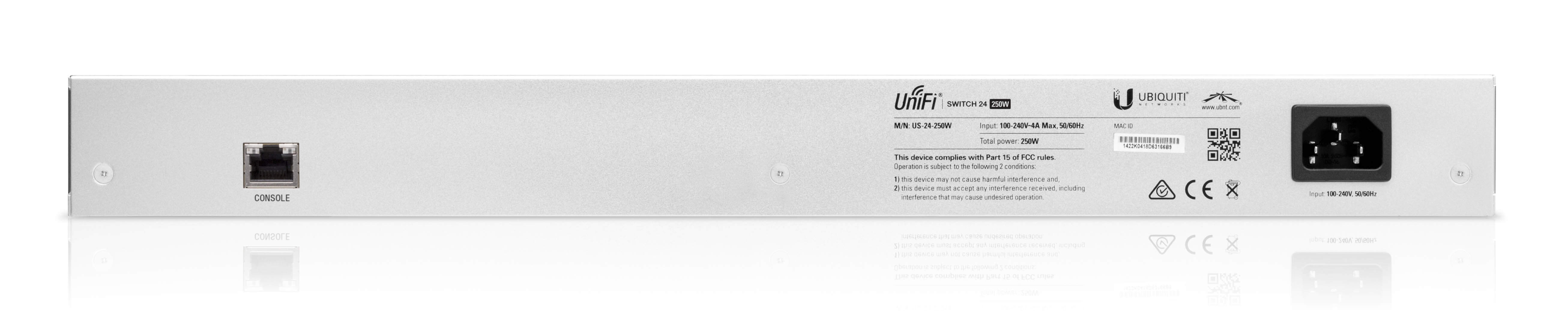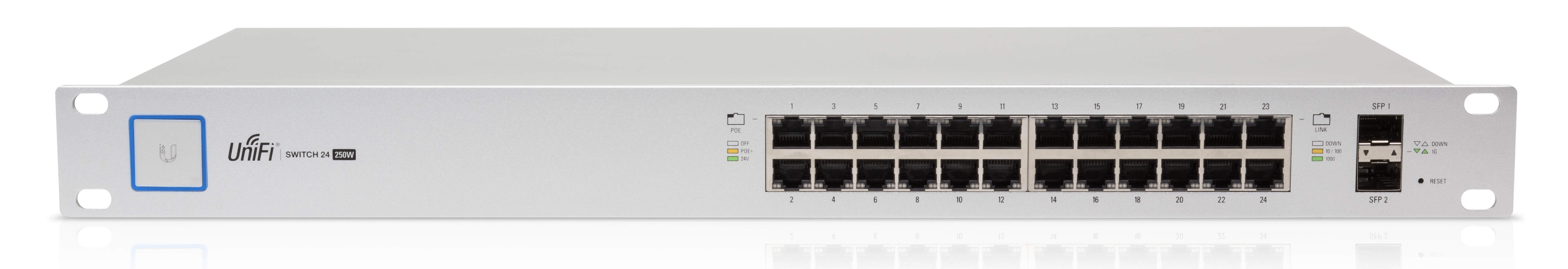 UBNT UniFi ürün ailesinin bir parçası olarak tasarlanmış UBNT UniFi Switch'ler, kurumsal yönetilebilir switch teknolojilierini sezgisel kullanım anlayışı ön planda tutlarak geliştirilen UBNT UniFi Controler yazılımı ile birleştirerek, çoklu cihaz yönetimi ve takibini tüm detayları ile tek bir ortak noktadan kontrol etme imkanı sağlamaktadır. UBNT UniFi Switch geniş çaplı kurumsal ağ ihtiyaçlarını karşılamak için tasarlanmış UBNT UniFi Switch US-24-250 modeli, Layer -2 ve Layer -3 standartlarını destekleyen gerçek yönetilebilir switch özelliklerinin yanısıra 802,3 af/at ve 24V Pasif PoE standartlarında 24 adet Gigabit ethernet portu, ve 2 adet SFP portu ile gelmektedir.