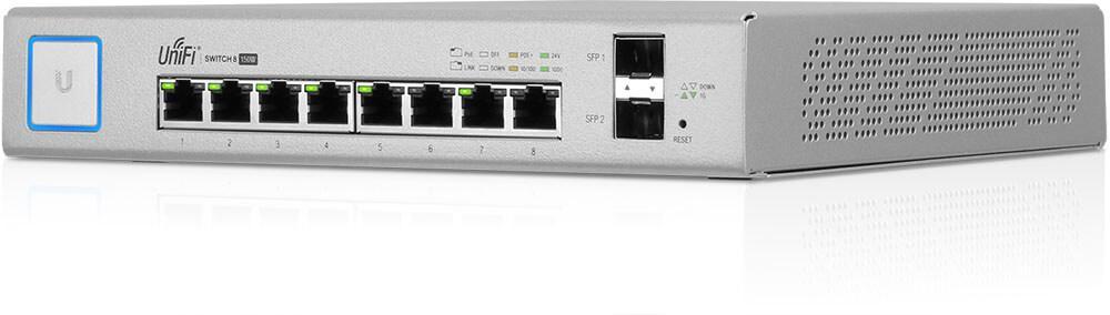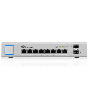 UBNT UniFi ürün ailesinin bir parçası olarak tasarlanmış UBNT UniFi Switch'ler, kurumsal yönetilebilir switch teknolojilierini sezgisel kullanım anlayışı ön planda tutularak geliştirilen UBNT UniFi Controler yazılımı ile birleştirerek, çoklu cihaz yönetimi ve takibini tüm detayları ile tek bir ortak noktadan kontrol etme imkanı sağlamaktadır. UBNT UniFi Switch ailesinin ufak çaplı kurumsal ağ ihtiyaçlarını karşılamak için tasarlanmış UBNT UniFi Switch US-8-150 modeli, Layer -2 ve Layer -3 standartlarını destekleyen gerçek yönetilebilir switch özelliklerinin yanısıra 802,3 af/at ve 24V Pasif PoE standartlarında 8 adet Gigabit ethernet portu, ve 2 adet SFP portu ile gelmektedir.