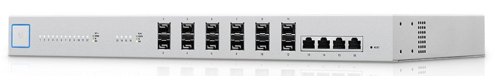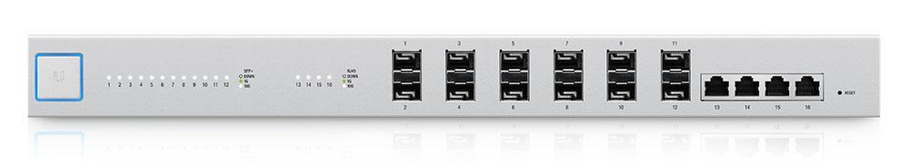 UBNT UniFi Switch ailesinin geniş çaplı kurumsal ağ ihtiyaçlarının omurga bağlantılarında kullanılmak için tasarlanmış UBNT UniFi Switch 16 XG modeli, Layer -2 ve Layer -3 standartlarını destekleyen gerçek yönetilebilir switch özelliklerinin yanısıra, 12 adet 1/10GBPS SFP+ portu ve 4 adet 10 Gigabit ethernet portu ile gelmektedir. EdgeSwitch 16XG tüm portlardan herhangi bir paket kaybı olmaksızın ve eş zamanlı olarak 160Gbps (Non-Blocking) gerçek bant genişliği sağlamaktadır.